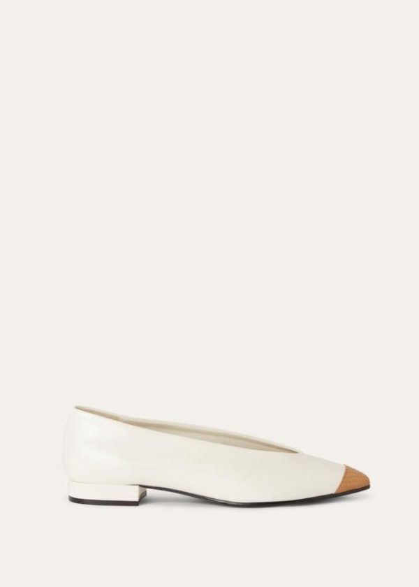 Step into elegance with our ballet flats, featuring a slightly rounded, tapered toe. Crafted with the utmost care from calfskin, these flats have a smooth feel and a distinctive semi-gloss finish. The contrasting python-effect embossed toe adds a touch of sophistication. Whether for a casual day out or a special occasion, these ballet flats are the perfect pair to slip into.