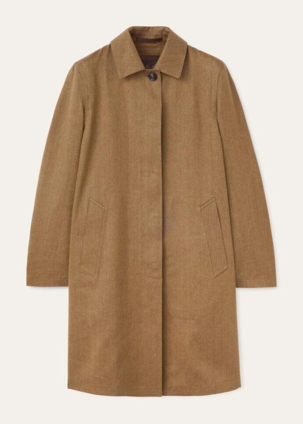 The Alder trench unfolds as a single-breasted coat with a fitted design, showcasing a shirt-style collar and leather lunette. Crafted from a blend of linen and cotton, the fabric is finished for a smooth, lustrous look, while horn buttons at the front add a touch of refined detail. Treated with a water-repellent finish, the trench offers a beautiful mélange of style and functionality, ensuring a versatile statement piece to complement a number of occasions.