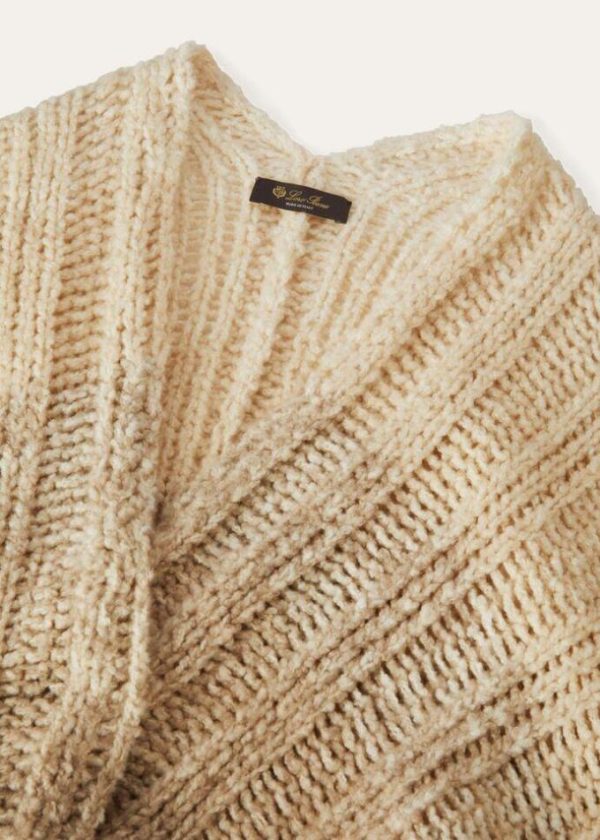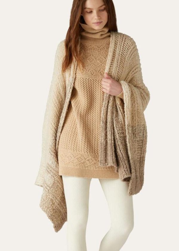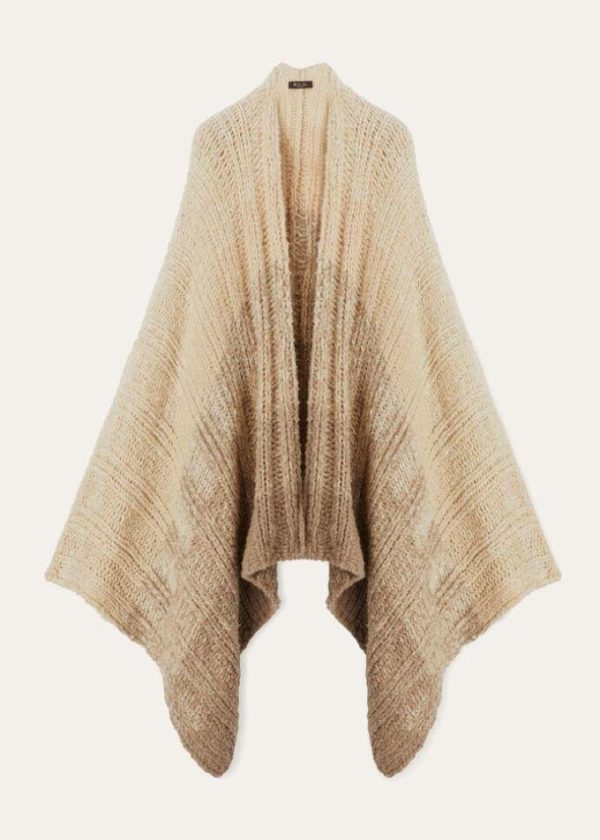 This loose-fitting shawl cape is crafted from pure cashmere yarn. Its warm, gossamer, bouclé texture provides unparalleled comfort and a light weight. Thanks to flat ribbing, it combines sporty style with a pleasant, cozy fit. A one-of-a-kind, elegant accessory. The gradient, natural shades of cashmere go perfectly with the collection’s outerwear.