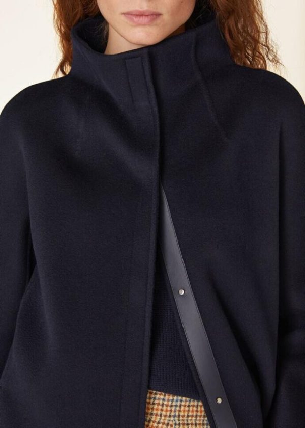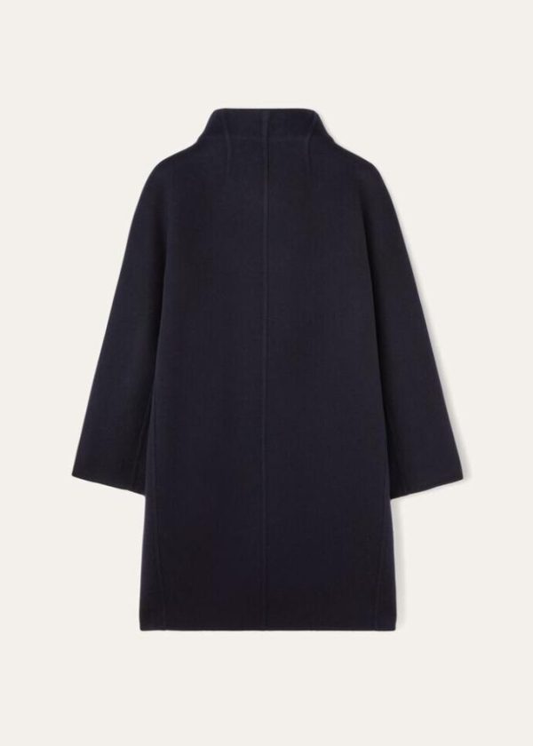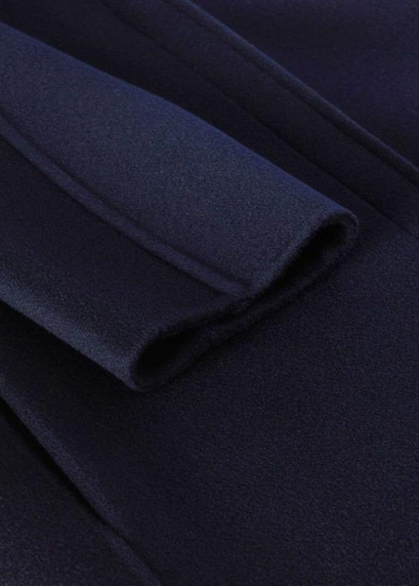 City coat in baby cashmere constructed with the double construction technique: the two layers of fabric are opened along the edges, folded back and invisibly stitched by hand. The resulting coat is unlined, enveloping and very light, impeccably finished inside and out.