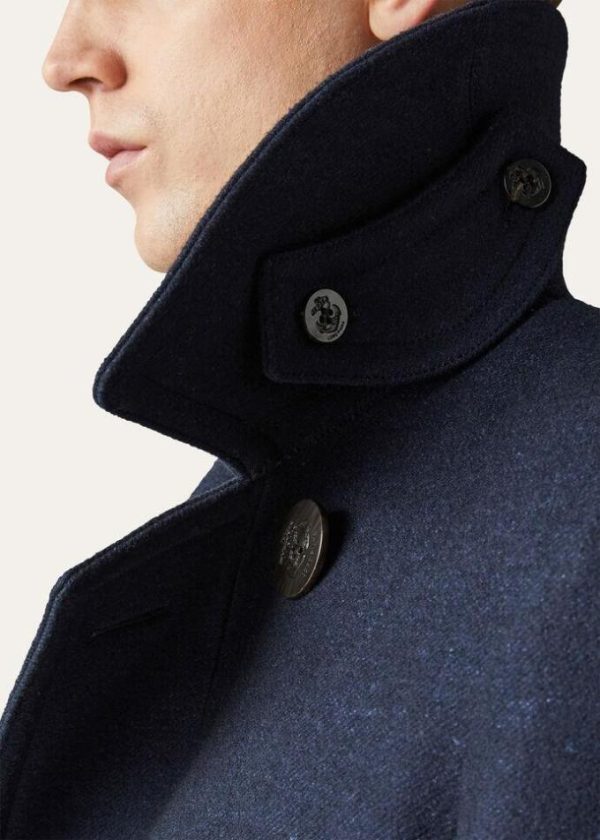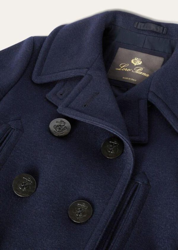 Closure featuring large buttons with an engraved nautical theme and Loro Piana logo