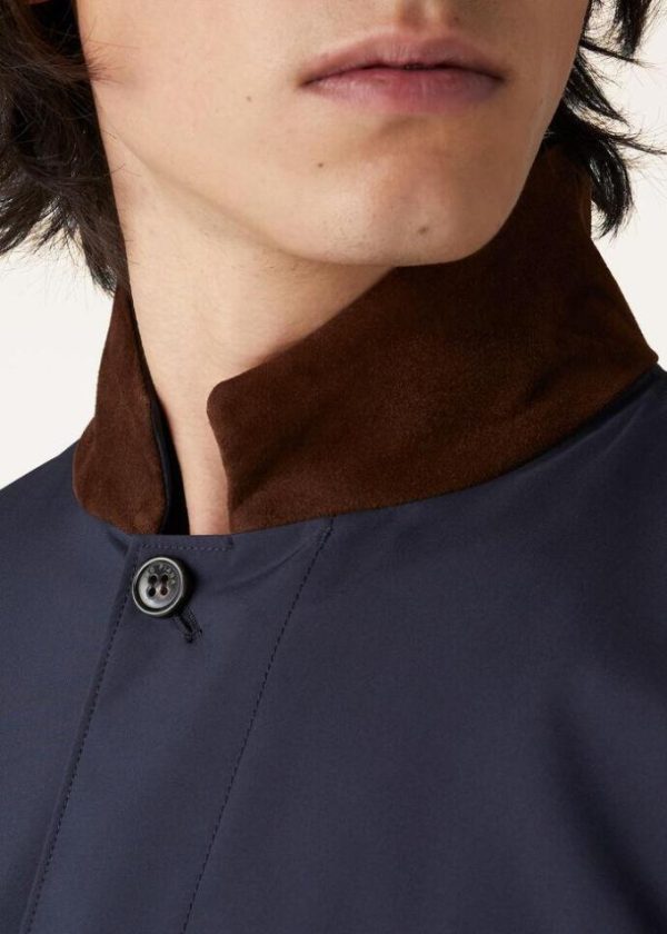 Suede yoke at the back collar