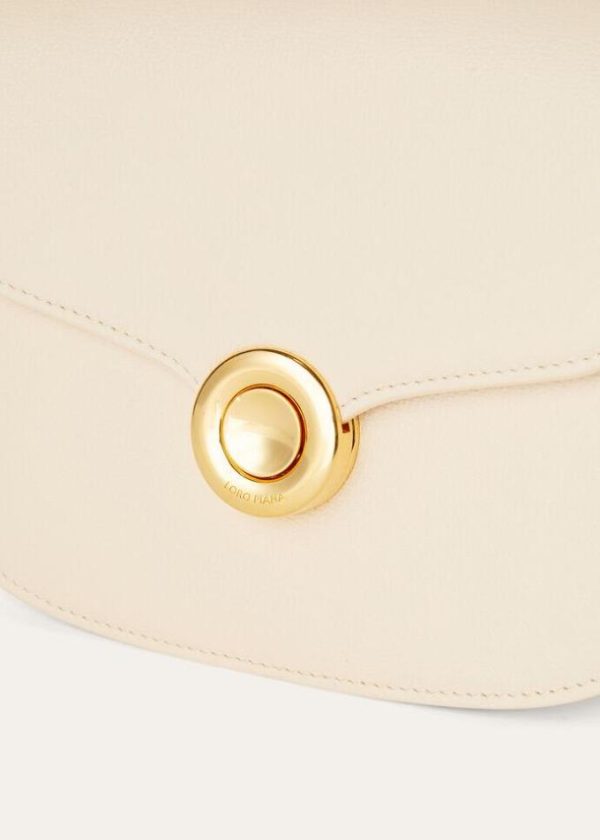 The latest addition to the Ghiera line is inspired by the new round clasp, a stylized version of the iconic Loro Piana ring clasp. Slightly more angular than the Ghiera bag, it features curved edges on the body and flap, striking a balance between structure and suppleness. Crafted from the finest calfskin, renowned for its lightweight and distinctive texture, it features an adjustable shoulder strap with metal buckle and hardware, and can be worn across the body or over the shoulder for versatile styling options.