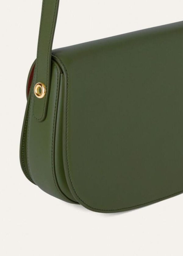 The latest addition to the Ghiera line is inspired by the new round clasp, a stylized version of the iconic Loro Piana ring clasp. Slightly more angular than the Ghiera bag, it features curved edges on the body and flap, striking a balance between structure and suppleness. Crafted from the finest calfskin, it features an adjustable shoulder strap with metal buckle and hardware, and can be worn across the body or over the shoulder for versatile styling options.