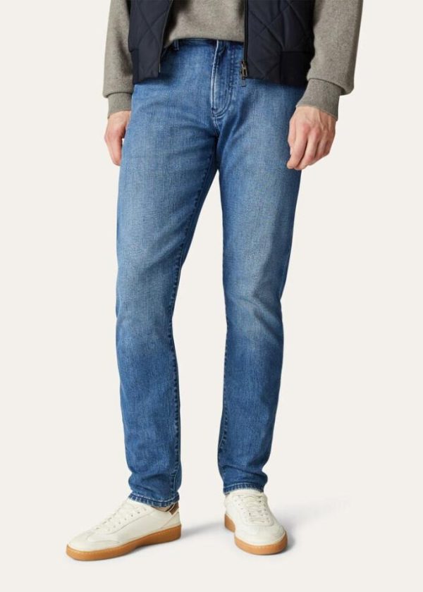 Classic Loro Piana five-pocket pants made from luxury Japanese denim. They are defined by an extremely comfortable slim fit. The fabric is manufactured and treated to minimize its environmental impact by using sustainable processes and following environmental protection guidelines, which has always been of utmost importance to the brand.