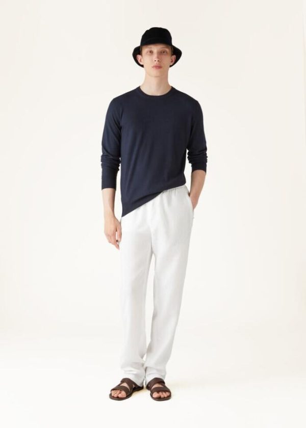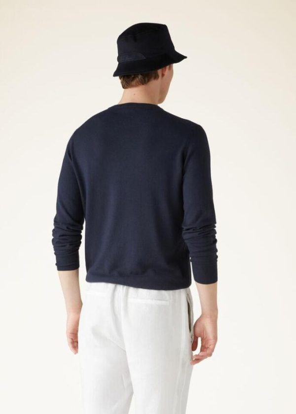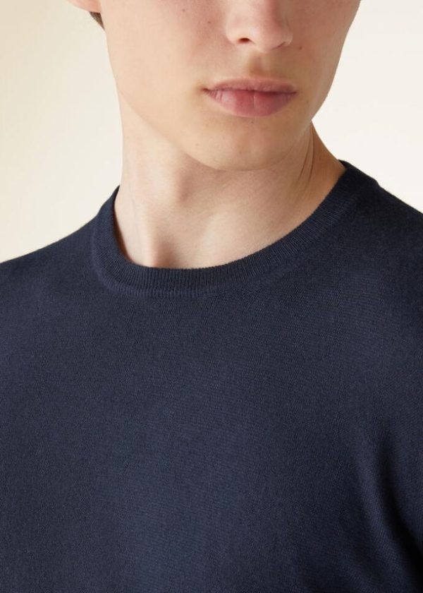 Crew neck in downy baby cashmere yarn, garment dyed and crafted using exclusive techniques to accentuate the natural feather-light softness of the fibre. Hip length, styled with a classic cut, ideal for refined leisure time outfits.