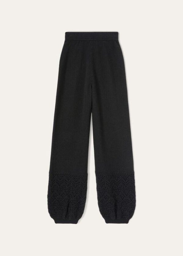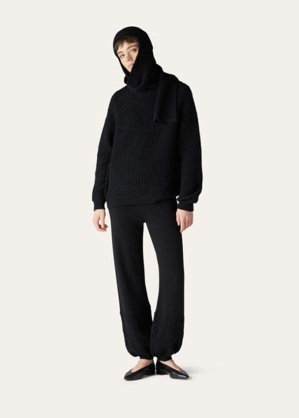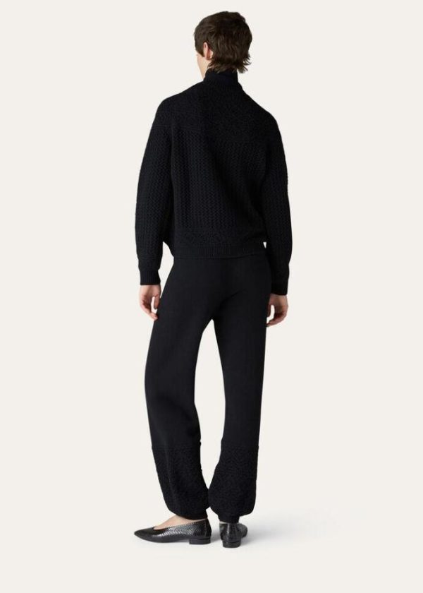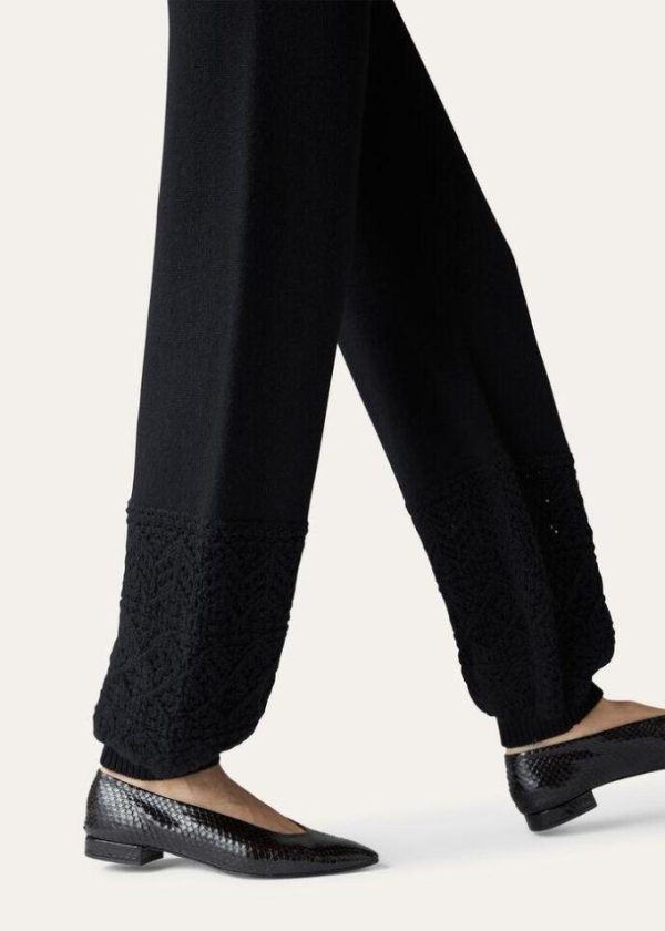 Celebrate the Christmas holidays together, in days spent on the slopes of Italian mountains, wrapped in the warmth of luxury materials. Crafted from Coarsehair® cashmere yarn, the Engadin pocketless pants feature a clean-lined silhouette and lightly puffed cuffs. The jacquard pattern and lacy crochet details provide a sporty allure. A comfortable, minimalist style that is perfect in leisure-time looks.