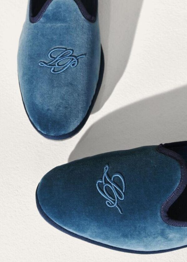Lightweight, comfortable, velvet slipper loafers. This versatile, elegant style is perfect for lounging and leisure time, thanks to grosgrain details and a monochromatic, embroidered LP monogram.