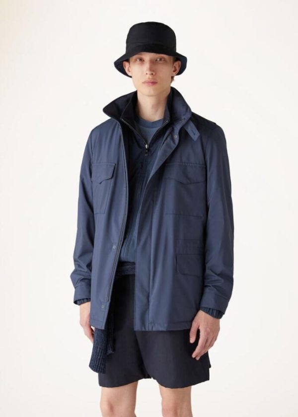 Iconic Loro Piana over-jacket crafted from Windmate®, our exclusive combination of microfibre and cashmere. Treated with Storm System® for a waterproof, wind-resistant finish, it is light-weight and versatile. Perfect for leisure time and travel.