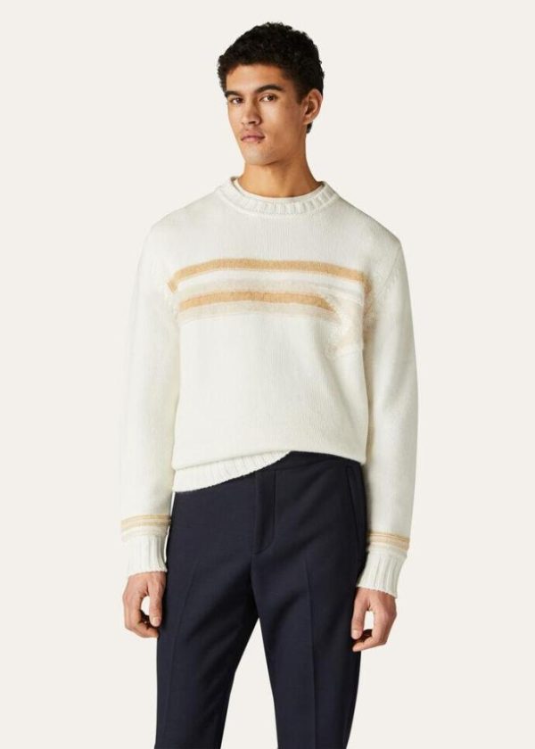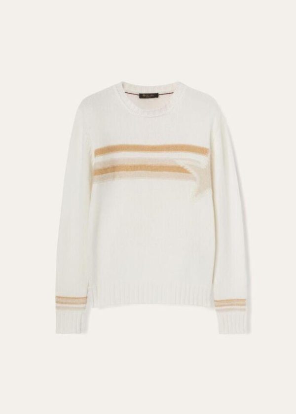 Celebrate the Christmas holidays together, in days spent on the slopes of Italian mountains, wrapped in the warmth of luxury materials. Crafted from cashmere-and-silk yarn, this crew neck features multi-colored stripes and contrasting, intarsia-knit stars. A flowing fit and lightly dropped shoulders complete the look.