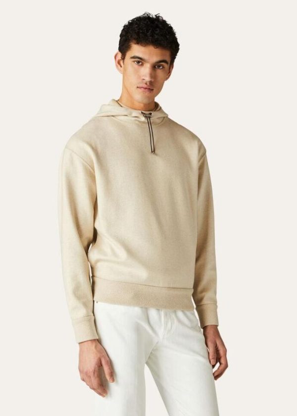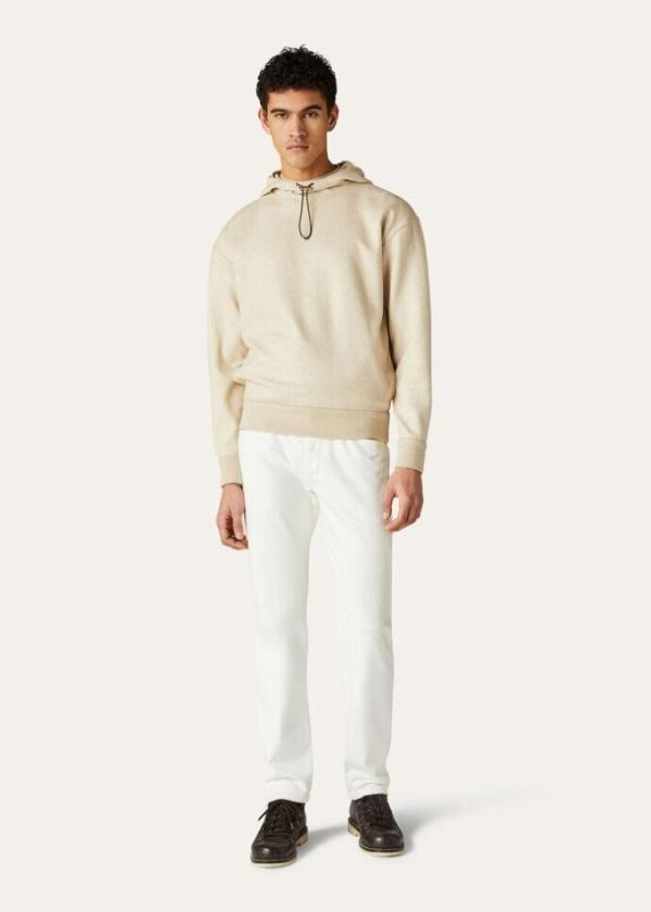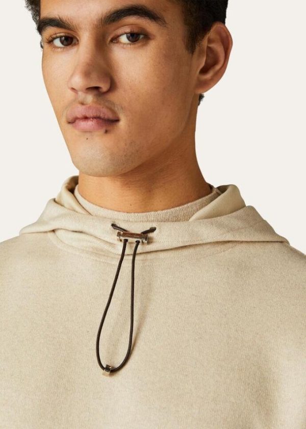 Celebrate the Christmas holidays together, in days spent on the slopes of Italian mountains, wrapped in the warmth of luxury materials. The Davos sweatshirt’s unique collar features an inside mock neck surrounded by a classic drawstring hood. It is crafted from soft technical jersey fabric made from naturally warm, extremely lightweight cashmere with a smooth, compact texture. Thanks to a sporty, oversized fit, it is perfect for the mountains or everyday lounging.