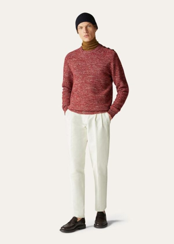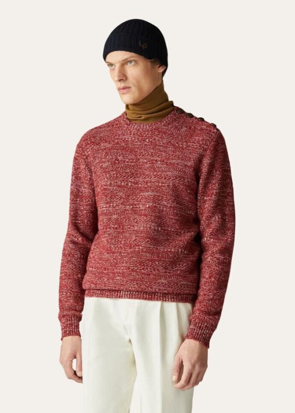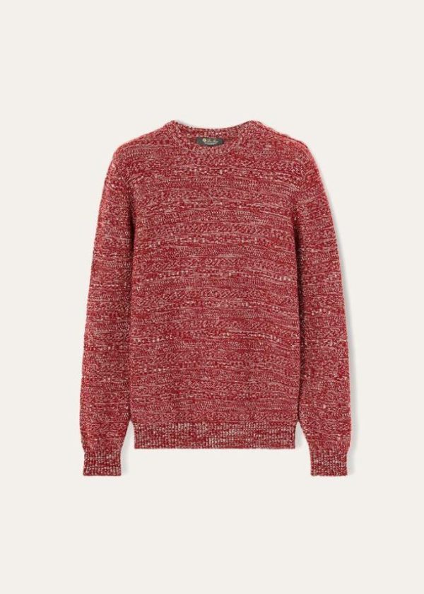 Loro Piana Knitwear | Man Lima Crew Neck Sapphire Blue And Ivory Mel