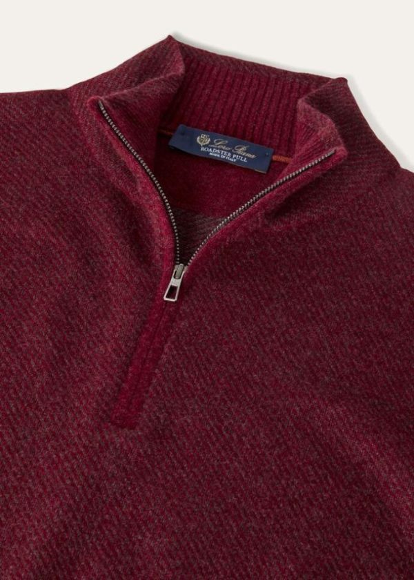 Mezzocollo sweater in cashmere crafted with a two-tone jacquard stitch. Part of the Roadster collection designed for vintage car enthusiasts, inspired by the uniform of the Loro Piana Classic Car Team. Ideal as a light-weight layer under a jacket.