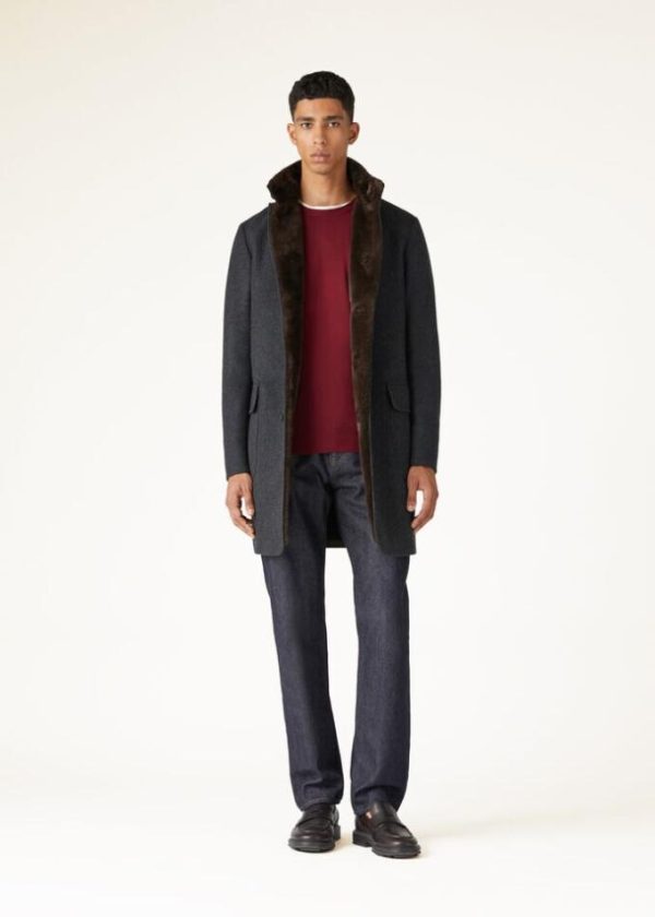 Rib-knit collar, hem and cuffs