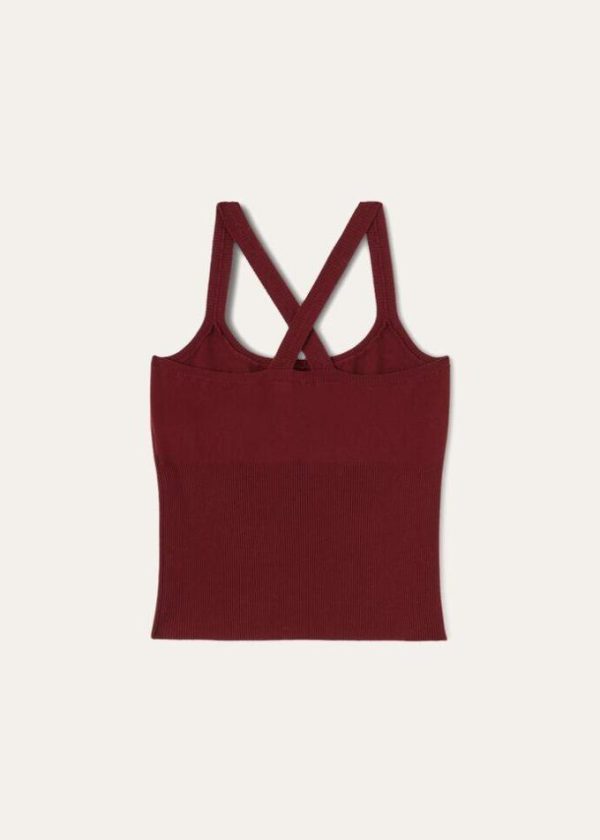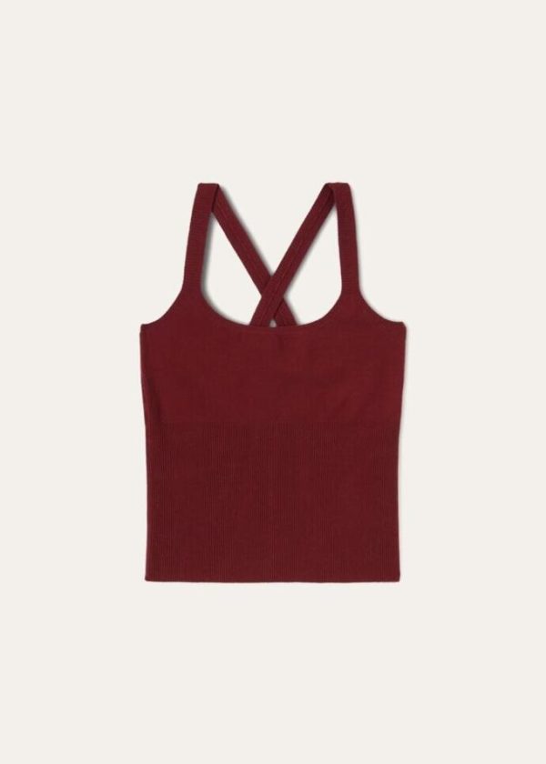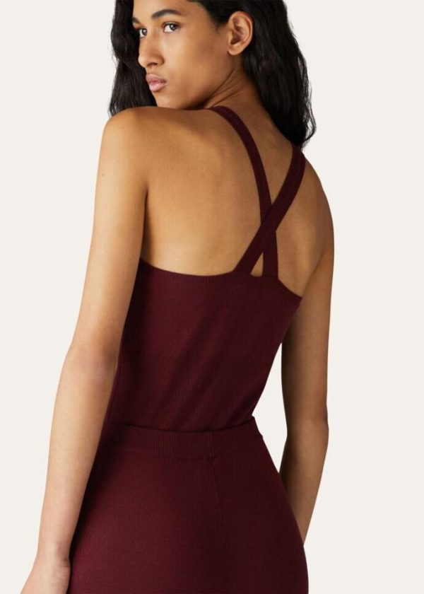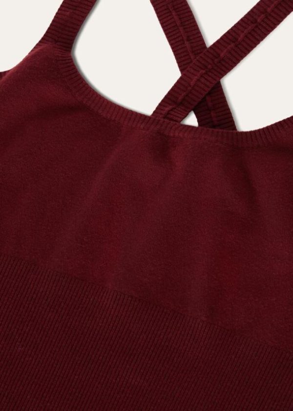 Criss-crossed, rib-knit shoulder straps