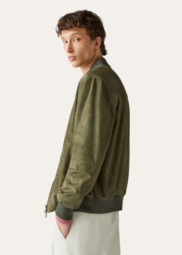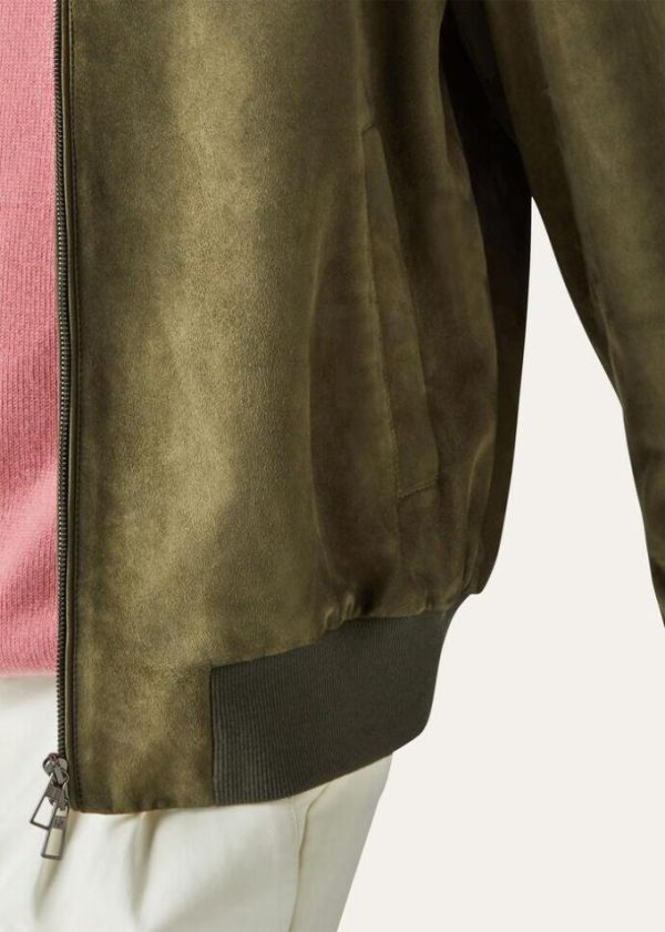 Iconic Loro Piana bomber jacket made from fine, lightweight suede. This soft, comfortable style is enhanced by light padding and a sporty, preppy collar.
