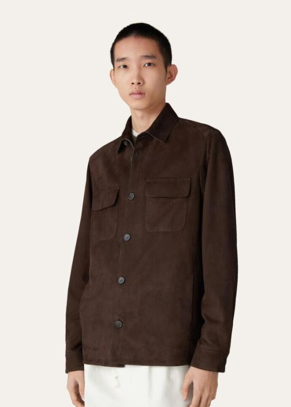 Shirt jacket crafted from ultra-soft suede treated with a water-repellent finish. Light-weight and crease-resistant, it is styled with a relaxed cut and pockets set into the side seams. Perfect for travel and leisure time.