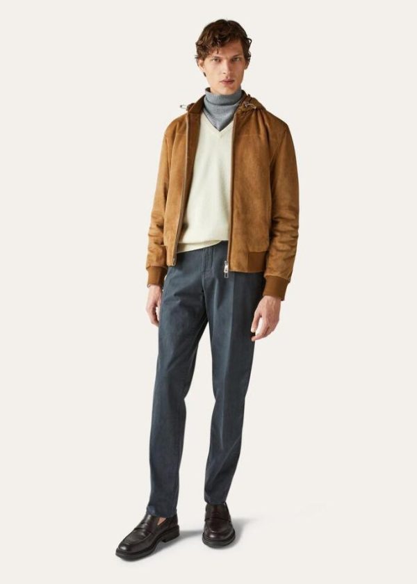 Featuring a drawstring hood, this sporty bomber jacket embodies the dynamic, adventurous spirit of the Andes. Crafted from featherlight suede with an almost gossamer appearance, its lightweight padding guarantees comfort and warmth on the coldest days of the year. It is perfect in edgy, casual outfits, thanks to a comfortable fit, knit Wish® details and versatile allure.