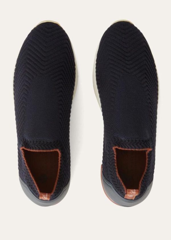 The 360 LP owes its name to the shoe’s actual weight, showcasing its exceptional lightness, while guaranteeing maximum comfort and flexibility. This laceless, slip-on style is artisanally crafted from padded, ultra-fine Wish® wool. They feature a central piqué weave trimmed with a three-dimensional jacquard chevron motif. Loro Piana’s version of the perfect sneaker for leisure and lounging.