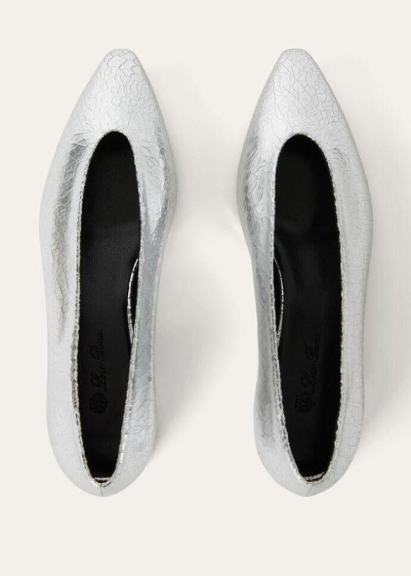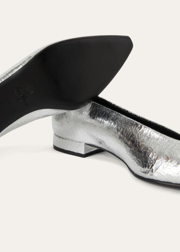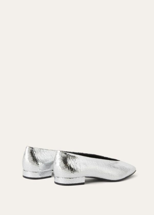 The Rebecca Ballerinas are defined by a slightly rounded, pointed toe. The leather is crafted using a unique artisanal technique, creating a geometric, craquelure texture. A versatile style that is perfect in modern looks.