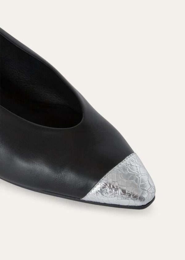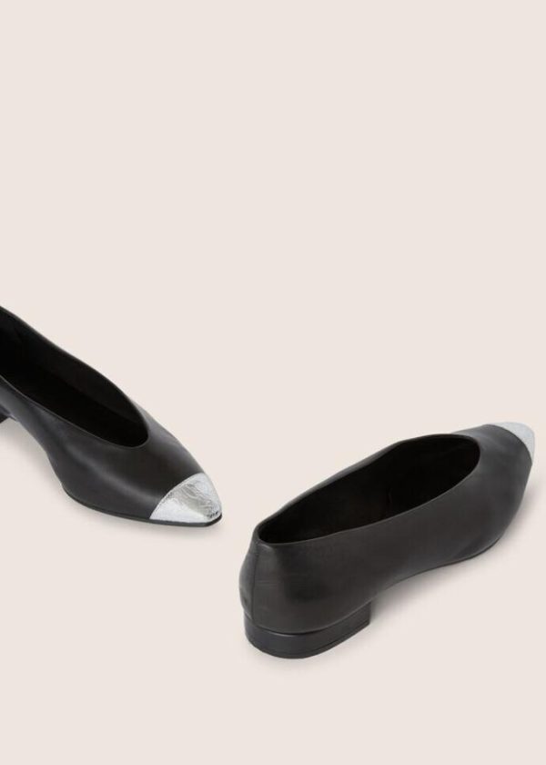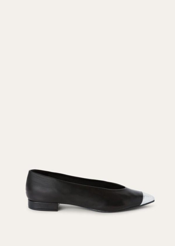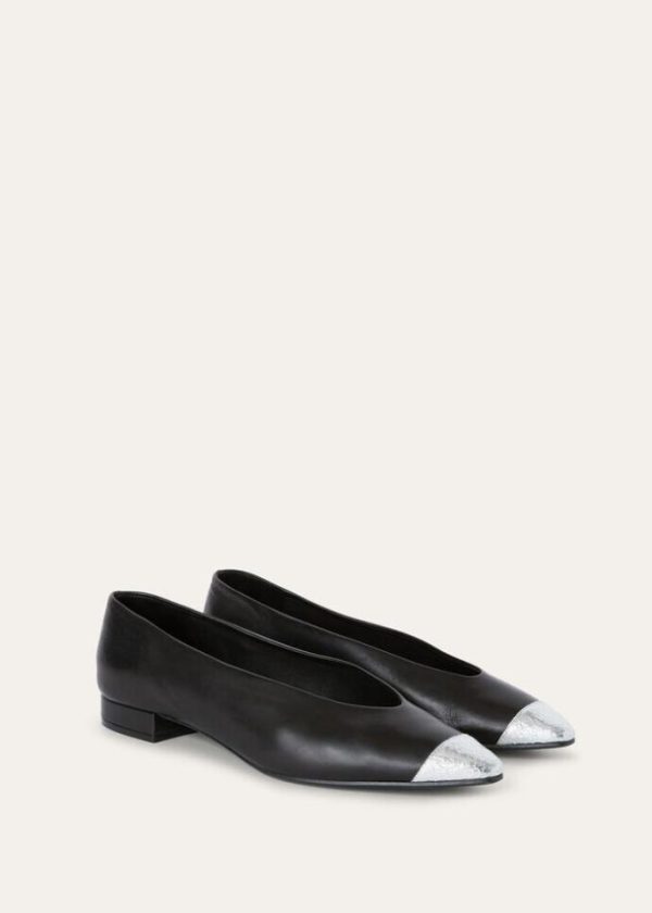 Step into elegance with our ballet flats, featuring a slightly rounded, tapered toe. Crafted with the utmost care from calfskin, these flats have a smooth feel and a distinctive semi-gloss finish. The contrasting crackle kidskin toe adds a touch of sophistication. Whether for a casual day out or a special occasion, these ballet flats are the perfect pair to slip into.