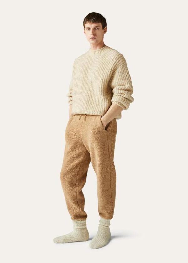 Loro Piana’s rich heritage is embodied in a capsule collection defined by natural shades, providing a new concept of everyday luxury and comfort for the coldest days of the year. Crafted from cashmere, cotton and wool jersey, these joggers feature an exceptionally soft texture and shearling-like surface. Thanks to their modern, flowing look and knit drawstring waist, they create an impeccable, elegant athleisure tracksuit when worn with one of the capsule collection’s sweatshirts. Incredibly fluffy, warm clothing and lifestyle accessories that feel pleasant against the skin, combining freedom of movement and extremely high-quality raw materials.