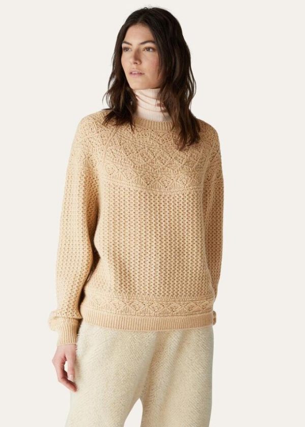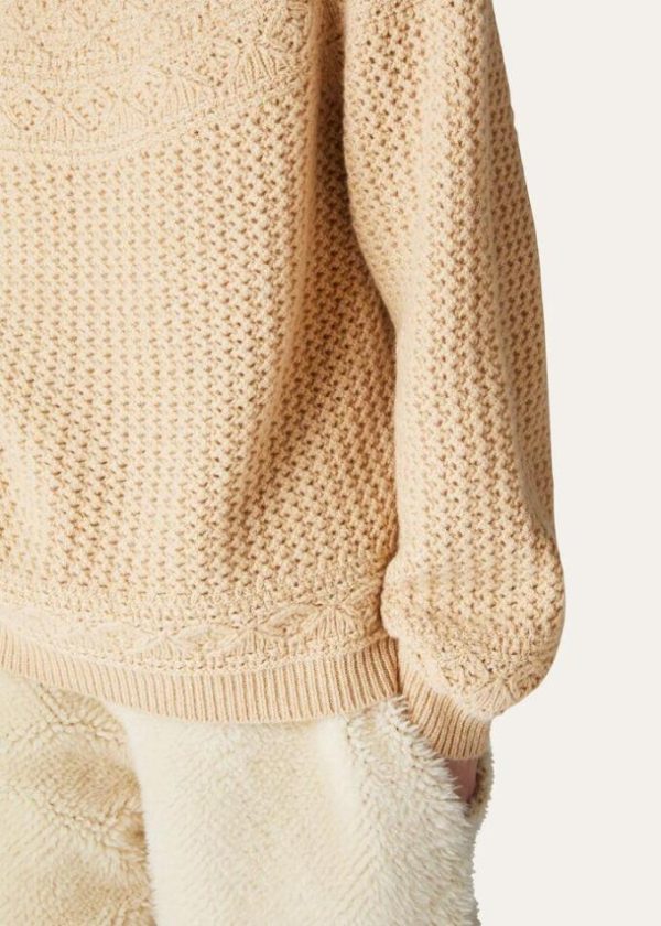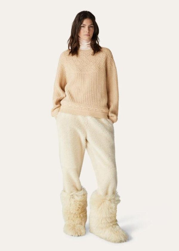 Celebrate the Christmas holidays together, in days spent on the slopes of Italian mountains, wrapped in the warmth of luxury materials. Crafted from Coarsehair® cashmere yarn that is soft and full-bodied to the touch, this crew neck features flowing puffed sleeves. A sumptuous jacquard weave creates a refined textured knit pattern with lacy crochet details. A regular-fit pullover that can be worn everywhere in everyday looks or under a jacket.
