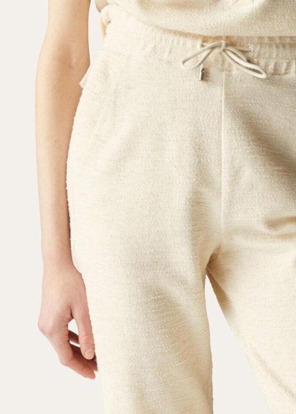 For the Autumn/Winter season, these drawstring pants are offered in linen, hemp and cotton jersey. The sophisticated blend of fibers creates a luxurious fabric with a nubby pattern, soft texture and sporty allure. When worn with the matching Tacna polo shirt or sweatshirt, they create an elegant outleisure outfit.