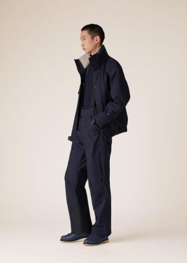 Sportswear garments for Christmas on the ski slopes. Crafted from three layers of technical fabric, this ski jacket features a collar with stowaway hood, along with side pockets, an eyeglass holder and two waxed breast pockets with diagonal zippers. Partially crafted from natural fibers, it is extremely pleasant to wear and has excellent thermoregulatory properties. Thanks to naturally waterproof, wind-resistant Wind Storm System® microfiber and wadded cashmere padding, it guarantees comfort and warmth.