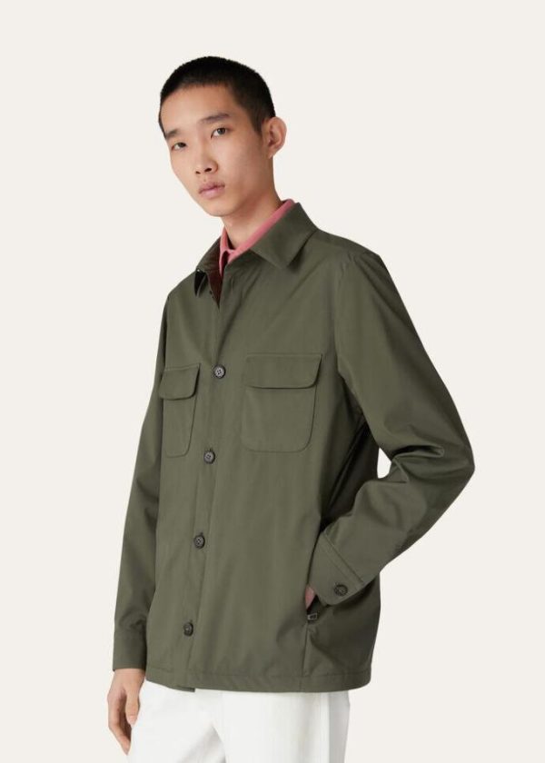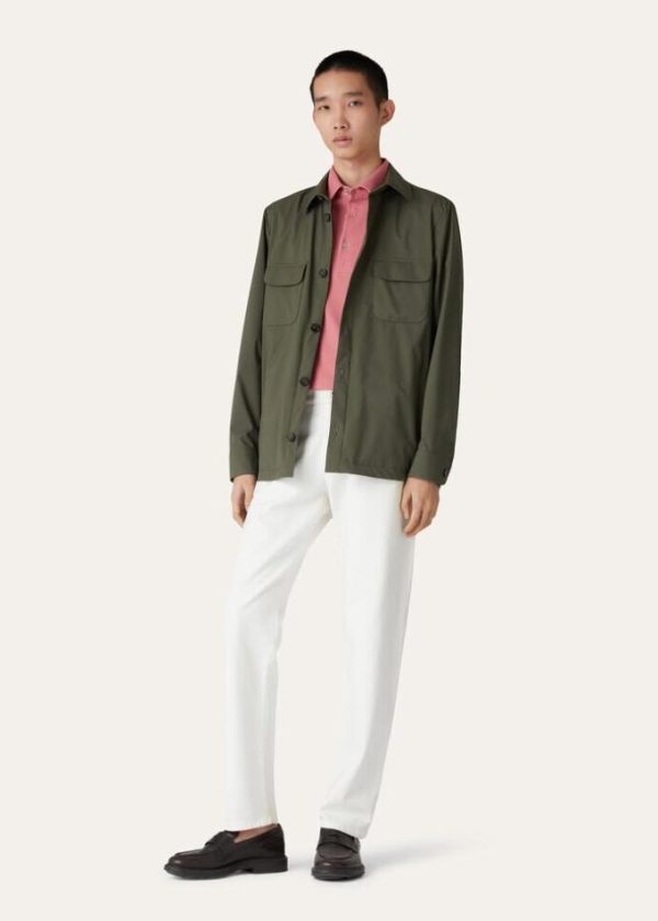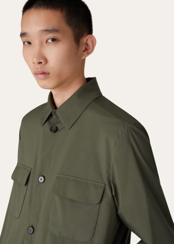 Flowing shirt made from WindWish™— an exclusive blend of the classic Loro Piana microfiber and knit Wish® wool. Thanks to a special Storm System® treatment, this sporty, functional style is waterproof and wind-resistant.