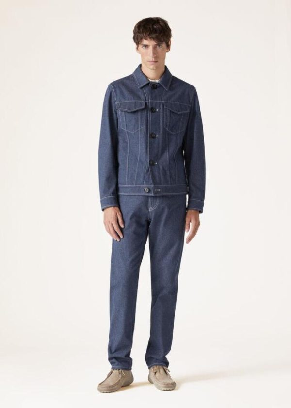 An unlined hip-length jacket, a contemporary take on the classic denim silhouette, reimagined with organic cotton denim. Using time-honored techniques, Loro Piana has created this compact denim that is not only hard-wearing but also exquisitely soft to the touch. Inspired by iconic denim jackets, this piece features instantly recognizable double stitching and a fit that pays homage to its timeless origins. Designed for a decidedly athleisure look, it widens gracefully across the chest and tapers subtly to the bottom.