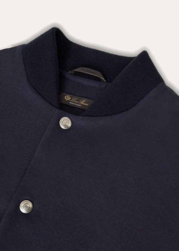 Double-faced bomber jacket made from The Gift of Kings® — Loro Piana’s exclusive selection of the world’s finest wool. It features flowing volumes, a characteristic low yoke, iconic preppy details, logo snaps and Rain System® treatment.