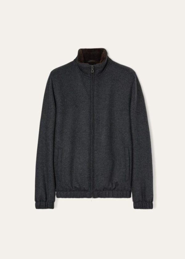 Loro Piana Outerwear Jackets | Man Sweater Bomber Black/gray Melange