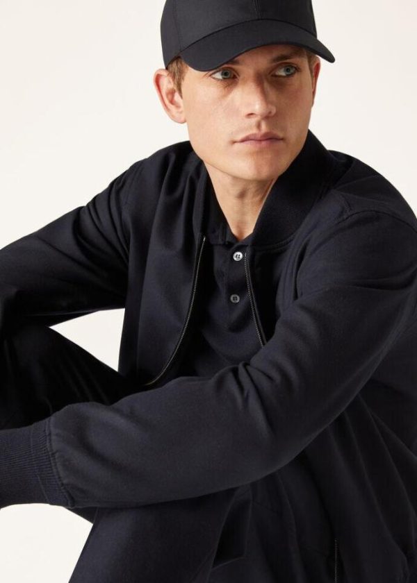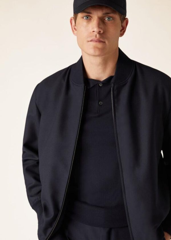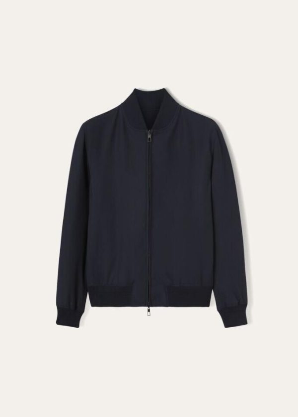 Reversible bomber jacket. One side is made from knit The Gift of Kings® wool and the other is in jersey of the same material. The result is a high-performance, lightweight fabric that maintains the hallmark softness of luxury virgin wool. This comfortable, delightfully sporty style features curved lines and a water-repellent Rain System® finish.