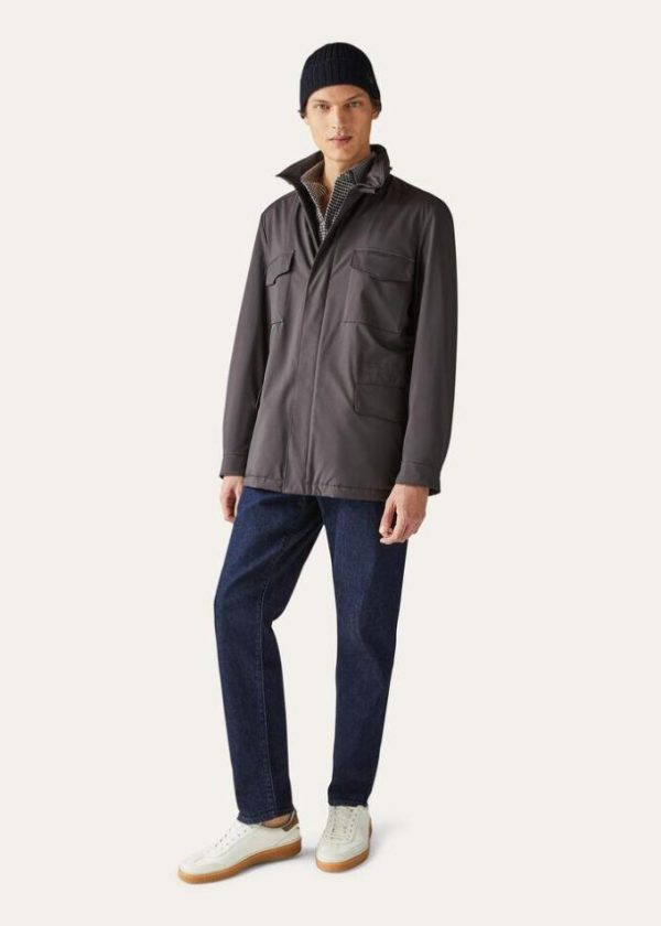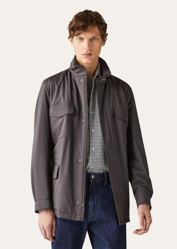 Iconic Loro Piana over-jacket crafted from Windmate®, our exclusive combination of microfibre and cashmere. Treated with Storm System® for a waterproof, wind-resistant finish, it is light-weight and versatile. Perfect for leisure time and travel.