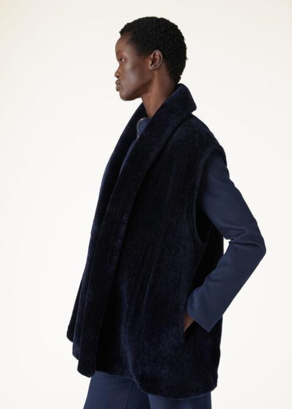 Step into a world of sublime warmth and style with the straight-cut Jikel shearling vest. With a folded collar that creates an elegant lapel effect, the voluminous, velvety soft fur is the result of a special finishing process. This vest is more than just an outer layer; it’s an exquisite embodiment of warmth and sophistication, inviting you to embrace both luxury and style with every touch.