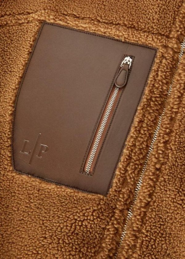 Front leather breast pocket with hot-stamped LP logo and zipped vertical side opening