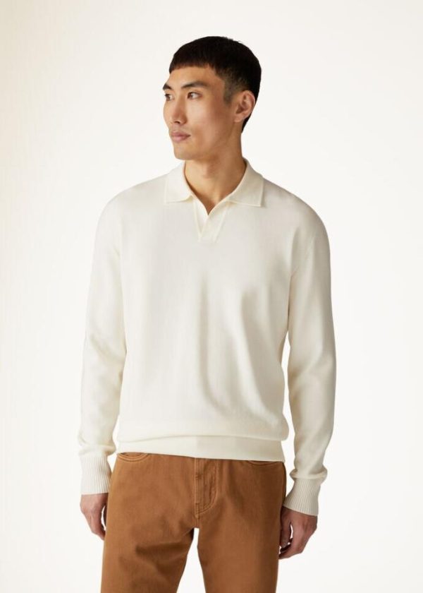 Polo crafted from Wish® wool, exceptionally fine fibre from selected Merino sheep bred in Australia and New Zealand. The knitted fabric has a clean, compact look. Relaxed cut with dropped shoulder.