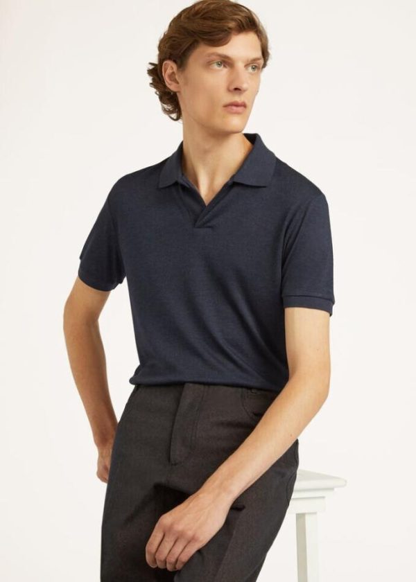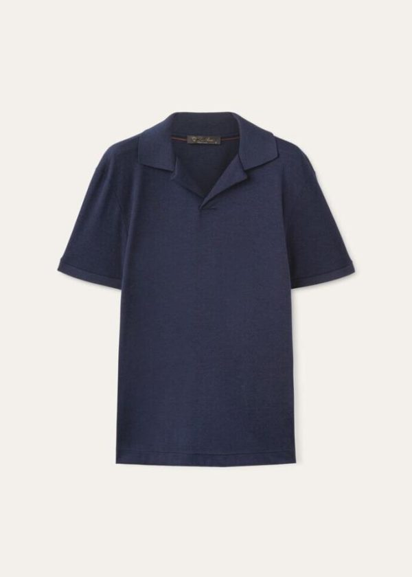 Short-sleeved polo shirt made from soft, compact, cashmere-and-silk jersey. This iconic Loro Piana style is entirely crafted with a plain, plated knit for a versatile, sportswear allure. A small bib collar with single-button closure completes the look.