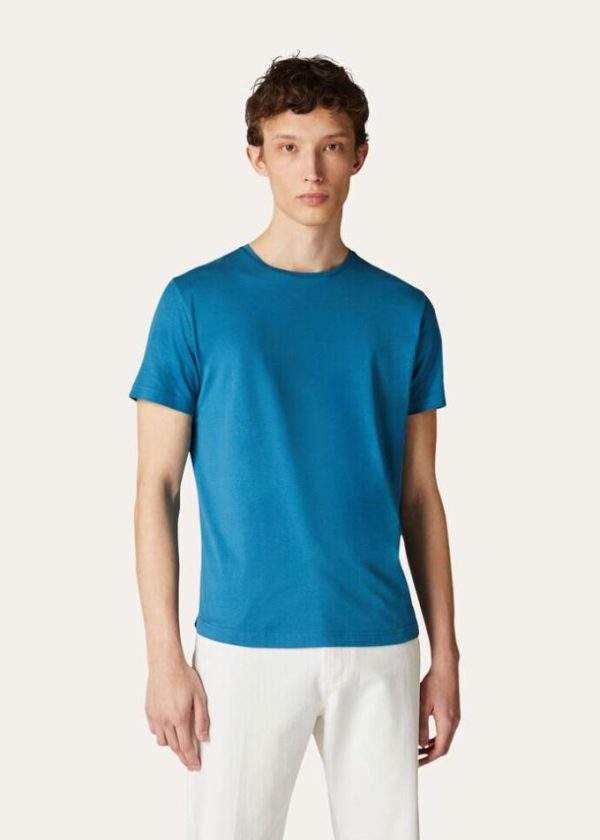 Crafted from cotton-and-silk jersey, this basic short-sleeved T-shirt is defined by an innately sporty summertime allure. Fresh cotton and glossy, lightweight silk are combined to create a soft, opaque texture, evoking the summertime vibes of far-off islands and the collection’s decidedly laidback spirit.