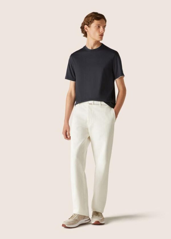 This short-sleeved T-shirt is defined by the neutral shades of the Ligurian Riviera. Crafted from extremely soft, lightweight cotton jersey, it is a minimalist, versatile style. It can be worn anywhere, thanks to a regular fit, while the Loro Piana logo print goes perfectly with other garments in the Summer collection.
