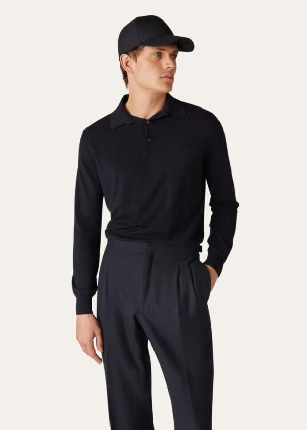 This impeccable plain knit polo shirt is crafted from “The Gift of Kings®” wool. Exclusively selected by Loro Piana and only 12 microns in diameter, it is the world’s finest wool: so fine that when unwound, a 1 kilo cone of yarn stretches out to 130 km. Rib-knit collar and cuffs, and hem with side splits. For true connoisseurs.