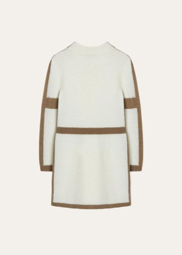 Celebrate the Christmas holidays together, in days spent on the slopes of Italian mountains, wrapped in the warmth of luxury materials. Crafted from plain-knit cashmere and silk with a brushed, slightly woolly look, this kid’s dress is enhanced with contrasting, intarsia-knit Coarsehair® cashmere. The blend of materials creates a rustic, full-bodied, exceptionally soft texture. A versatile style that can be worn as a tunic or minidress, thanks to an adjustable drawstring waist.
