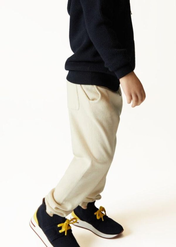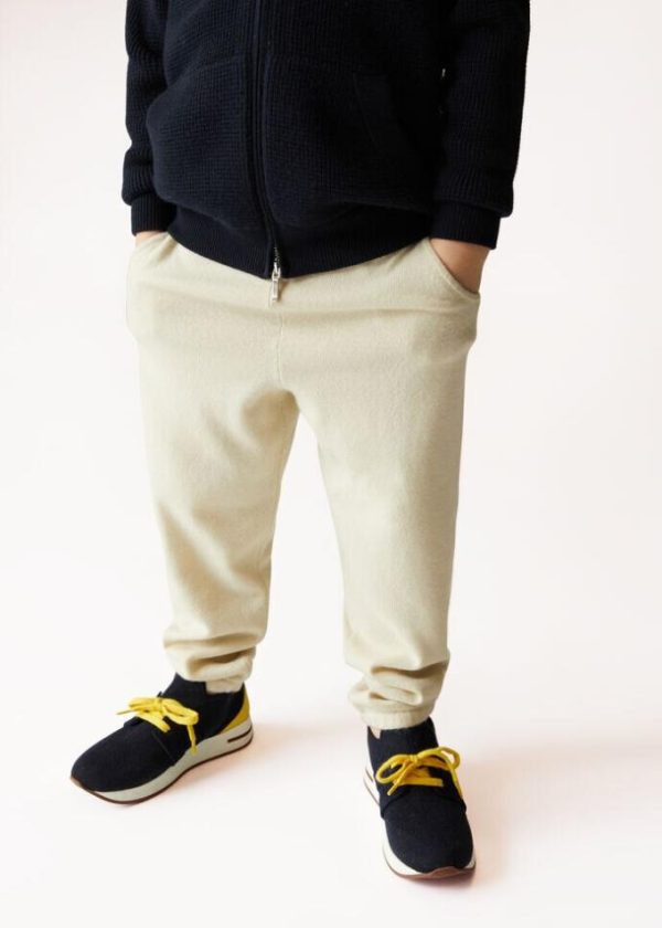 A miniature version of the classic pants in knitted baby cashmere. Casual and ultra-soft, ideal teamed with the Merano Bomber to create a supremely comfortable tracksuit for play and leisure time.