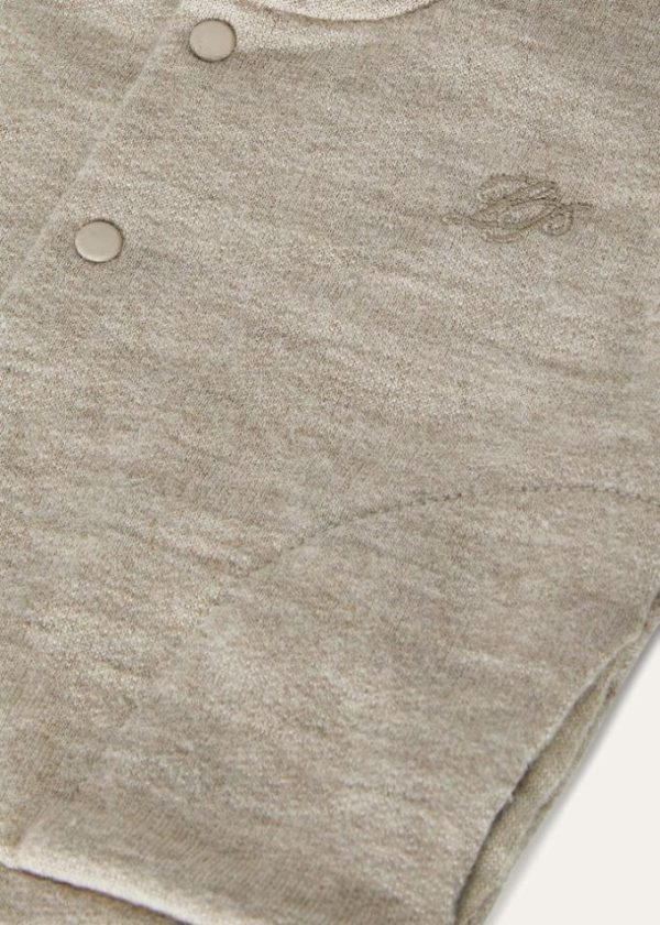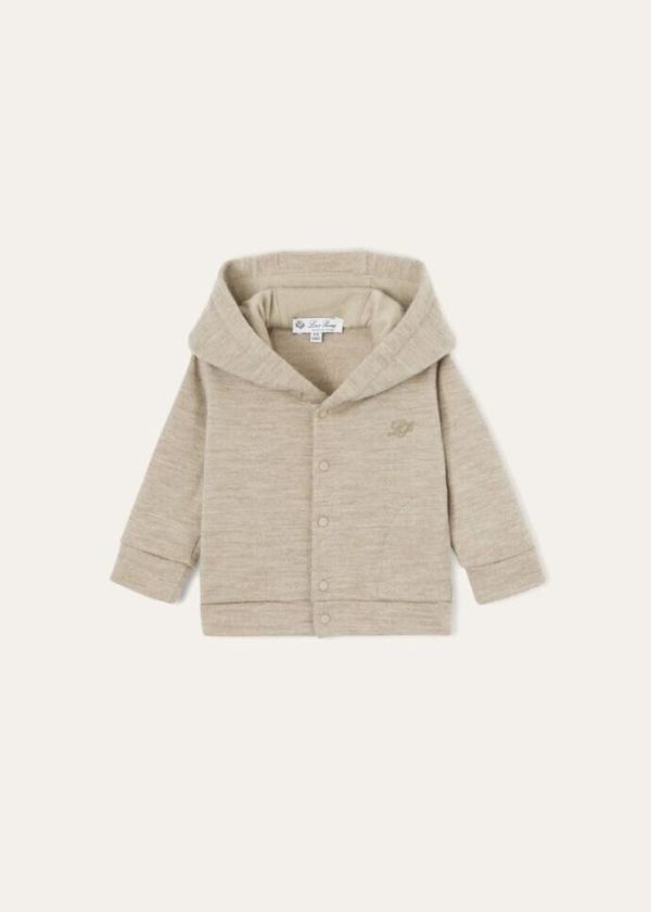 Hooded bomber jacket made from mélange cashmere jersey. The luxury fiber is exceptionally soft and lightweight; it is used in its natural color to preserve the yarn’s prestigious characteristics and guarantee maximum comfort. A small embroidered logo on the chest completes the look.