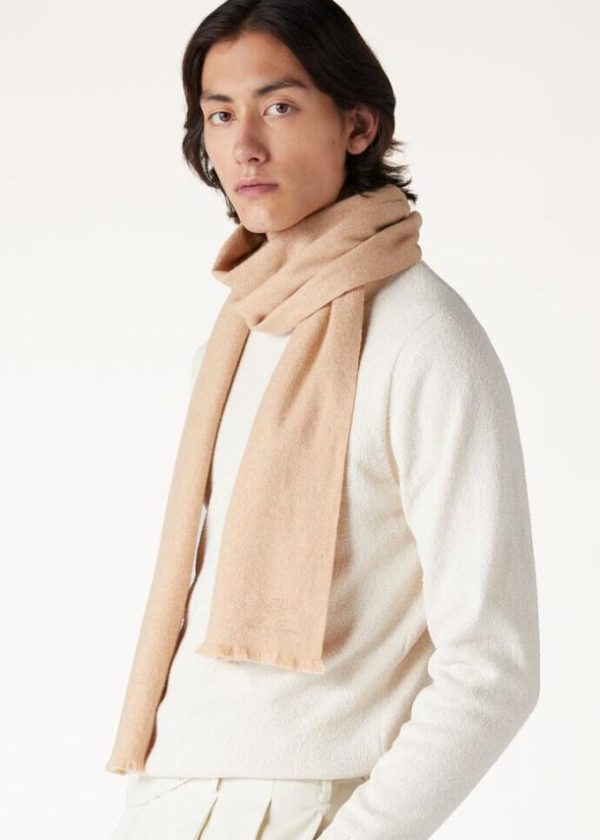 Scarf made from lightweight, gossamer, cashmere-and-silk yarn. This handwoven item is defined by a voluminous, full-bodied look, making it perfect in sophisticated summer looks.