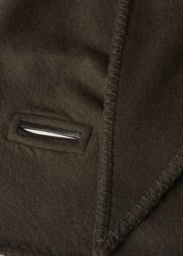 A triangular scarf meticulously crafted from exclusive double-layered cashmere. Decorated with nappa leather eyelets, this scarf is a harmonious blend of sumptuousness and intricate detail. The borders, in two-tone cashmere yarn, feature an intricate blanket stitch for a touch of artisan elegance. More than just an accessory, this triangular scarf is an irresistible expression of style.