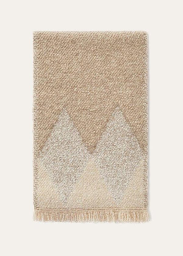 Scarf crafted from natural, pure cashmere yarn with a soft, inherently toasty texture. A faded, diamond-shaped Argyle pattern is defined by subtle contrasting colors. Incredibly fluffy, warm clothing and lifestyle accessories that feel pleasant against the skin, combining freedom of movement and extremely high-quality raw materials.
