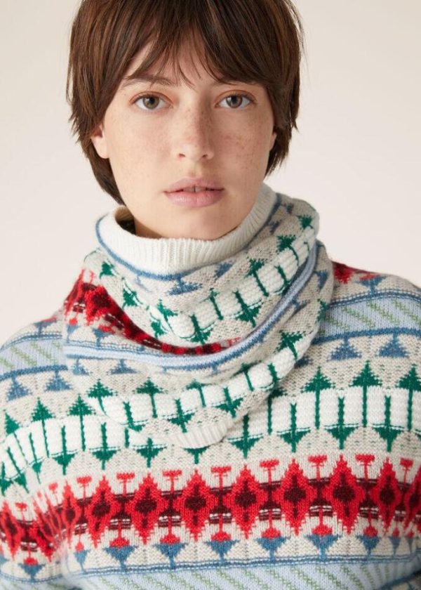 An ode to winter getaways and mountain adventures, crafted from compact, fluffy Coarsehair® yarn, this scarf features a sumptuous, multi-colored jacquard weave. A comfortable cashmere piece with the vintage-allure of a Fair Isle pattern.