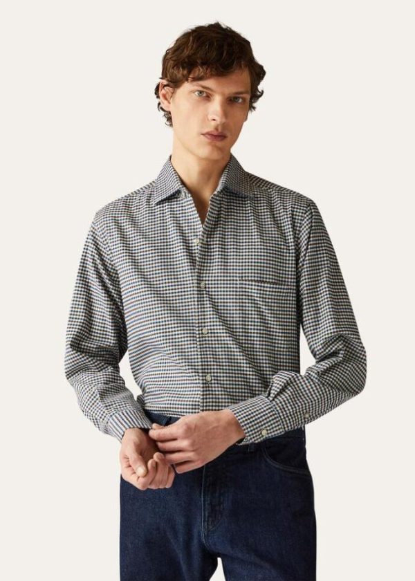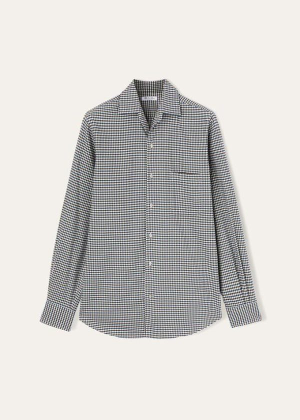 The André is the ultimate Loro Piana shirt. Its hallmark characteristic is a lapel collar that is designed to be worn open. Strongly representative of the brand, it is offered for the Fall/Winter season in extremely soft, brushed cotton fabric with a two-toned plaid motif. A men’s shirt for those seeking the ideal combination of casual elegance.